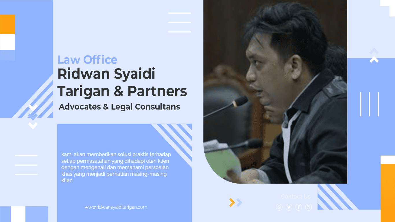 Ridwan Syaidi Tarigan & Partners adalah firma hukum yang menyediakan layanan jasa hukum komprehensif untuk perusahaan dan perorangan. Mereka memiliki keahlian dalam litigasi, mencakup semua tingkat peradilan di Indonesia, baik peradilan umum, agama, maupun tata usaha negara.